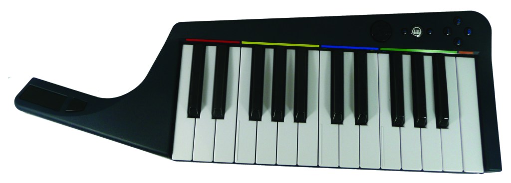 The Piano Controller was the latest musical instrument controller for the Rock Band franchise. However, while numerous guitars and drum sets for prior versions of Rock Band had just been controllers that looked and acted like actual instruments, they were useless outside of the game. The $80 Piano Controller that Mad Catz designed for Rock Band 3 was a genuine 2-octave MIDI keyboard with 25 keys.