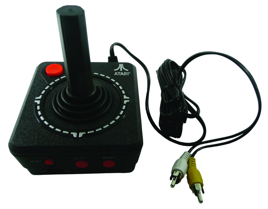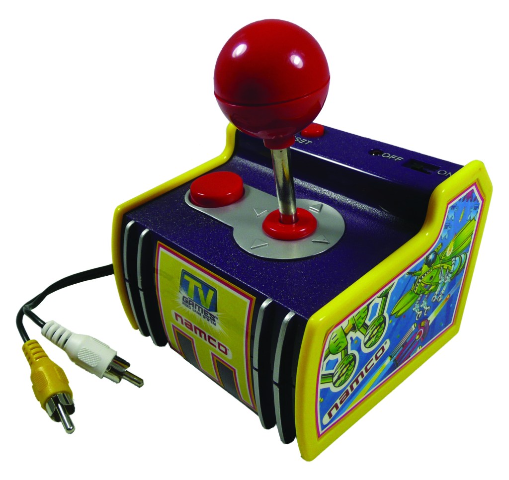 Toymax was purchased in 2002 by Jakks Pacific, a seven-year old toy company, which released a second Plug & Play console exclusively through Avon. This one was called Atari 10-in 1 TV Games. This unit looked very much like the iconic Atari 2600 joystick with reset, select and start buttons on its side and audio and video cables sticking out of its back. The built-in games included several of the most popular 2600 games including, Adventure, Asteroids, Missile Command and Yar’s Revenge. Oddly, three paddle games, including Pong and Breakout, were also included in the joystick.