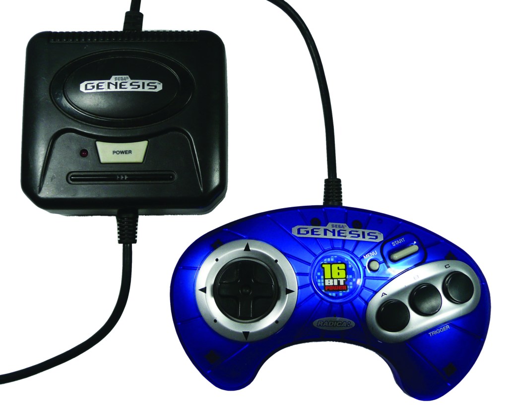 Other arcade games that were released in 2004 as Plug & Plays were Space Invaders and Tetris, courtesy of Radica, a company that had previously manufactured electronic casino games. Radica also released a pair of Plug & Play units called Arcade Legends. These looked like miniature Genesis 2 consoles and the only difference between them was one had a connecting blue Genesis controller and the other was attached to a red. Each featured six built-in Genesis games including Sonic the Hedgehog, which was on the blue set, and Sonic the Hedgehog 2, which was found on the red one. These would not be the last Plug & Plays to feature Sega Genesis games.