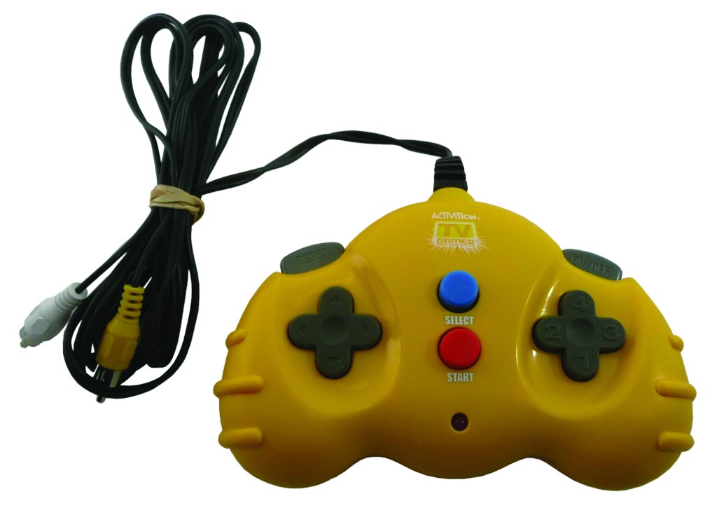 The first Plug & Play device was from a company called Toymax, which released the Activision TV Games Video Game System in 2001. Looking like a generic controller, the console featured two D-pads and two shoulder buttons, and plugged into a television’s audio/video inputs via two attached RCA cables. Built-into the unit were nine ported Activision Atari 2600 games including River Raid, and one from Imagic, which had been purchased by Activision.