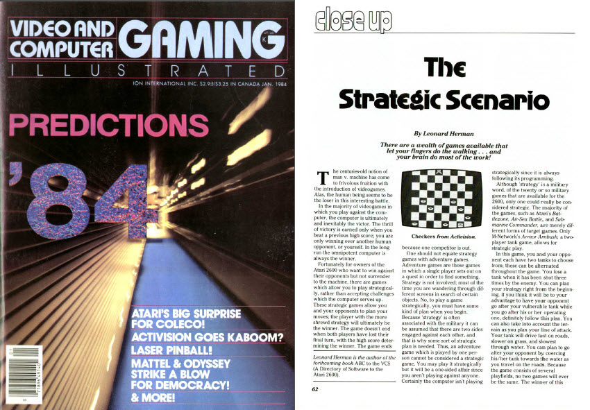 Even though the editors of Videogaming and Computergaming Illustrated weren’t happy with my first article, they decided to give me a second chance. They asked me to do a feature about strategic videogames and I told them I only really knew about the Atari 2600 games. They said that was okay and so I wrote The Strategic Scenerio. This was published exactly as I wrote it. Not one word was altered. This article also featured a short blurb about ABC To The VCS. I’ll never know if they wanted me to continue writing for the magazine as it folded after the issue that followed this one.