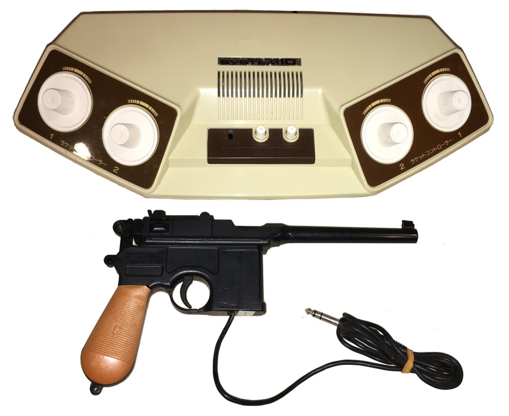 Epoch’s answer to Nintendo’s Color TV Game 15 was a console that played ten games. The System 10, which was released in September, 1977, included ball & paddle games which could be enjoyed solo, or by two or four players. In addition, it featured target games that were used with a German Mauser C96 light pistol that was included with the console, which retailed for the same ¥15,000 as Nintendo’s deluxe machine. Epoch would continue to battle Nintendo and other competitors for the next two years by releasing dedicated systems, but their console released at the very end of the decade would be a notable departure.