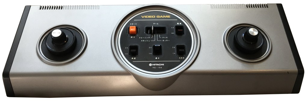 After the apparent success of the Electrotennis, Epoch partnered with electronics manufacturer Hitachi to release a silver version stripped of Epoch’s branding and simply called Video Game. It is believed this unit was sold exclusively in Hitachi-affiliated stores. Soon after in April 1977 Hitachi released a second console that had been built by Epoch. This one, like the original, was also a silver horizontal unit that was labeled Video Game. However this one had Hitachi branding and a model number: VG-104, which effectively became its nickname. The ¥24,800 ($87) VG-104 played four monochrome ball & paddle titles, and Epoch built 10,000 units.