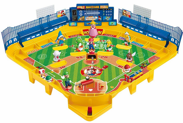 Super Mario Baseball Board or any of other Super Mario-themed toys are not available in North America. But the American subsidiary, now called Epoch Everlasting Play, boasts a huge line of toys and games for children of all ages. And yes. Keeping with company tradition, Super Stadium Baseball Games is one of those toys.
