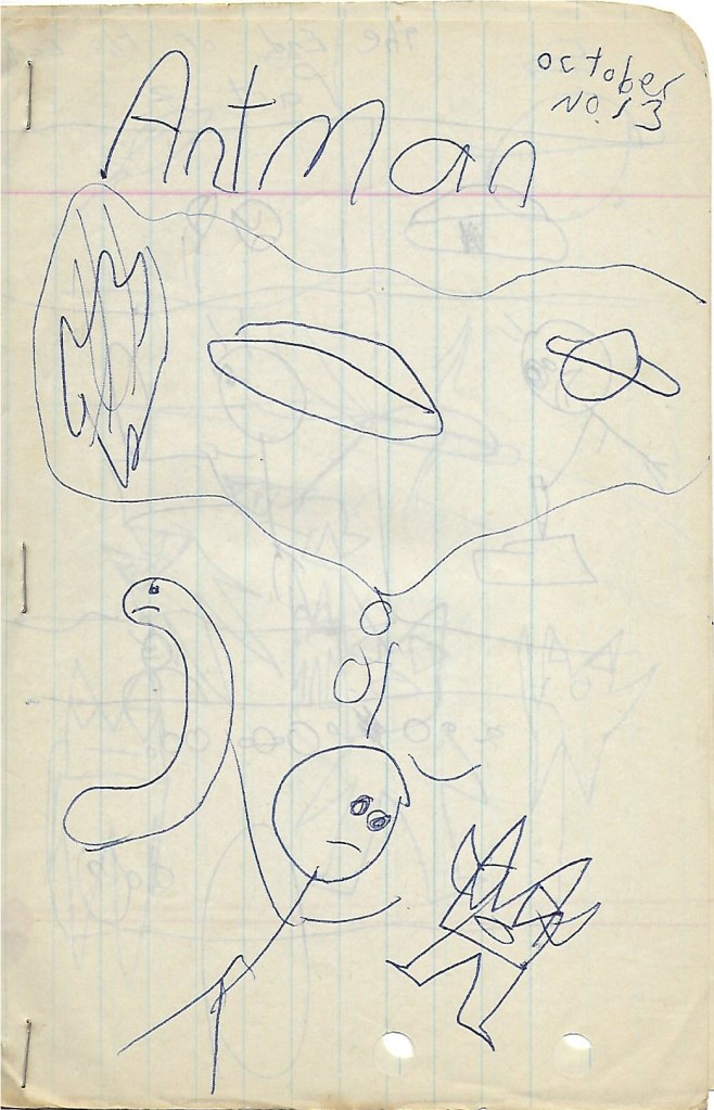 I began writing when I was ten years old. An avid reader of Superman comics, one day I took two pieces of notebook paper, folded them in half, stapled them along the edge, and began writing comic books. I use the word “writing” loosely because what I actually did was draw pictures. Other than the cover, each page consisted of six panels of pictures and no dialog. I called this “comic book” Antman and it featured the exploits of a superhero named Antman and his sidekick Snakeman. The problem with these comic books was that I couldn’t draw if my life depended on it. Antman was a stick man with antennae protruding from the top of his head and Snakeman was an oval with a pair of eyes and a mouth at one end.