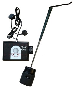 Sports Sciences also released a $130 unit for golf fans. TeeV Golf consisted of a specially-made “golf club” and a base that plugged into the console’s two controller ports. In the center of the base was a simulated golf ball and the base used infrared beams to track the position of the club as it passed over the ball. Like Batter Up, TeeV Golf was used with existing golf games. However, since the many golf games played differently, TeeV Golf had to be remapped for different games. The unit was bundled with a cartridge that mapped the system to play with Electronic Arts’ PGA Tour Golf but additional cartridges to map other golf games were supposed to be available separately but it is doubtful that they ever were.