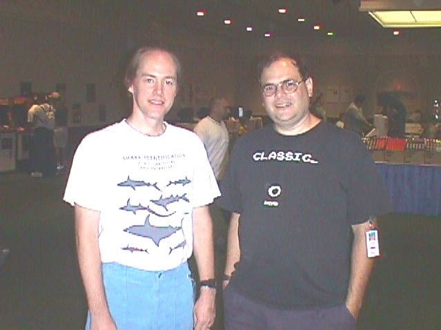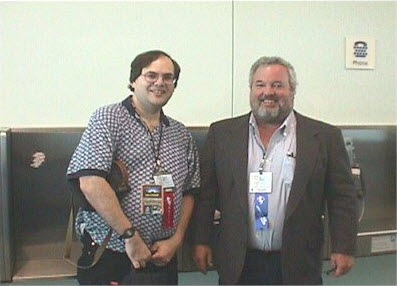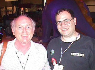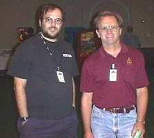 The photo below of Warren and me was taken at Classic Gaming Expo in 2002, after we both were interviewed for segments in the cable show Icons, which aired on the cable network G4.