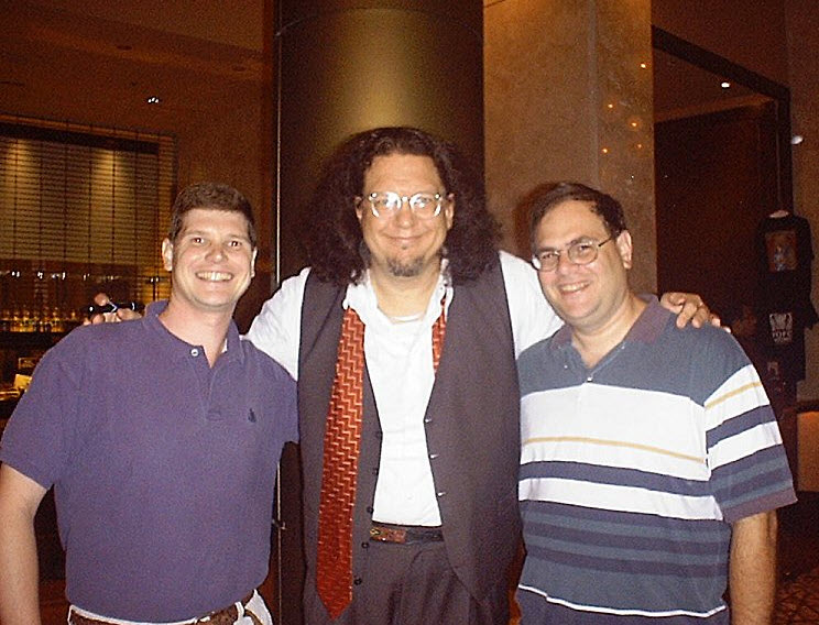In 1995 Absolute Entertainment planned to release a game for the Sega CD called Penn & Teller’s Smoke and Mirrors. Unfortunately the company went out of business before the game could be released. My friend, Michael Thomasson, tried to secure the rights to the game so he could release it through his company, Good Deal Games. Somewhere along the way this never happened but in 2001, while we were in Las Vegas for Classic Gaming Expo, Michael received tickets for Penn and Teller’s show at the Rio Hotel and Casino. He invited me. Below is a photo of Michael, Penn and me taken at the Rio. I didn’t get a photo with Raymond Teller but I did hear him speak!